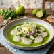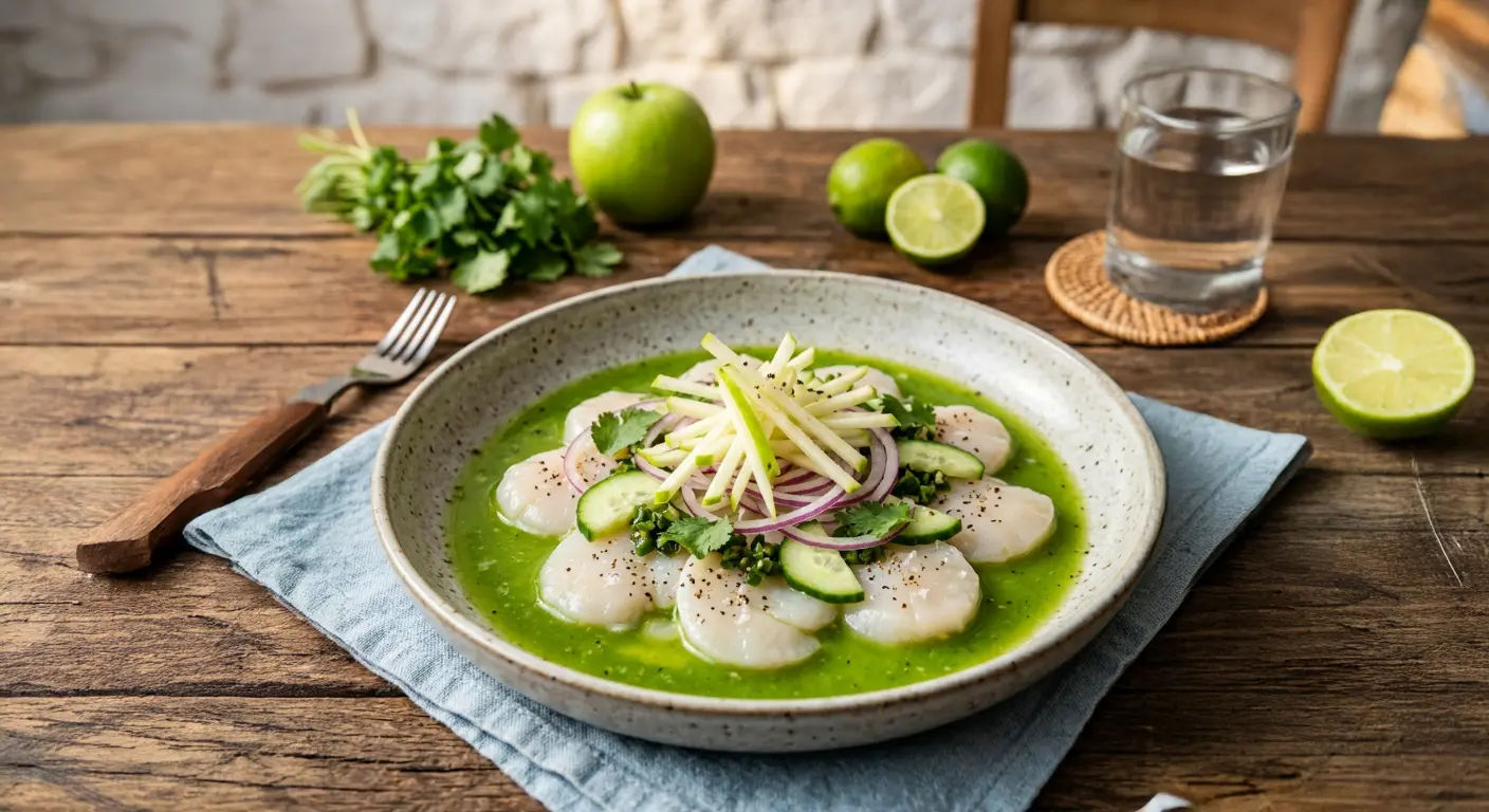 This dish is a vibrant, refreshing appetizer that balances the sweetness of raw scallops with a bright, herbaceous "chili water." Serves: 4 people (Appetizer