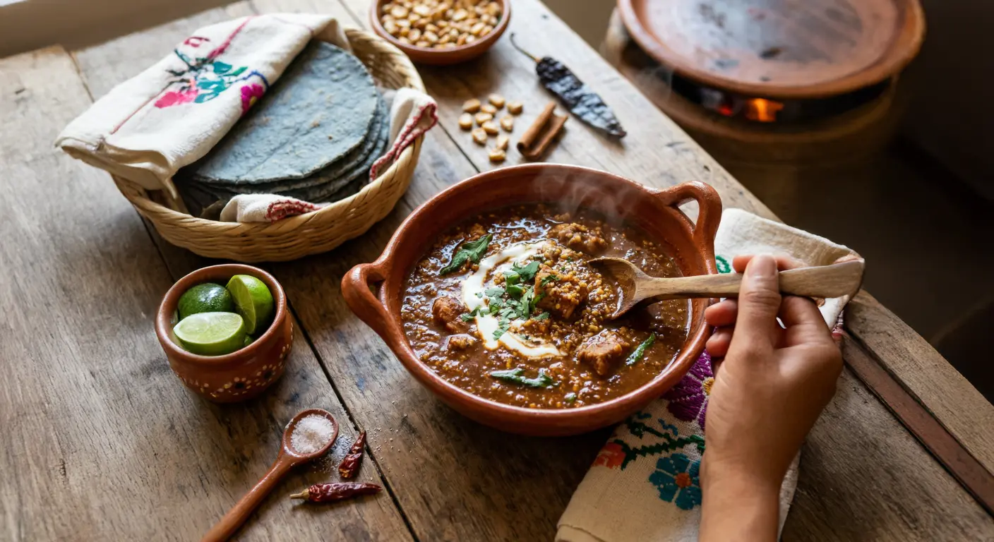 Zeguesa is a profound example of Zapotec culinary engineering. Unlike the more famous velvet-smooth moles, Zeguesa is celebrated for its coarse, rustic texture and