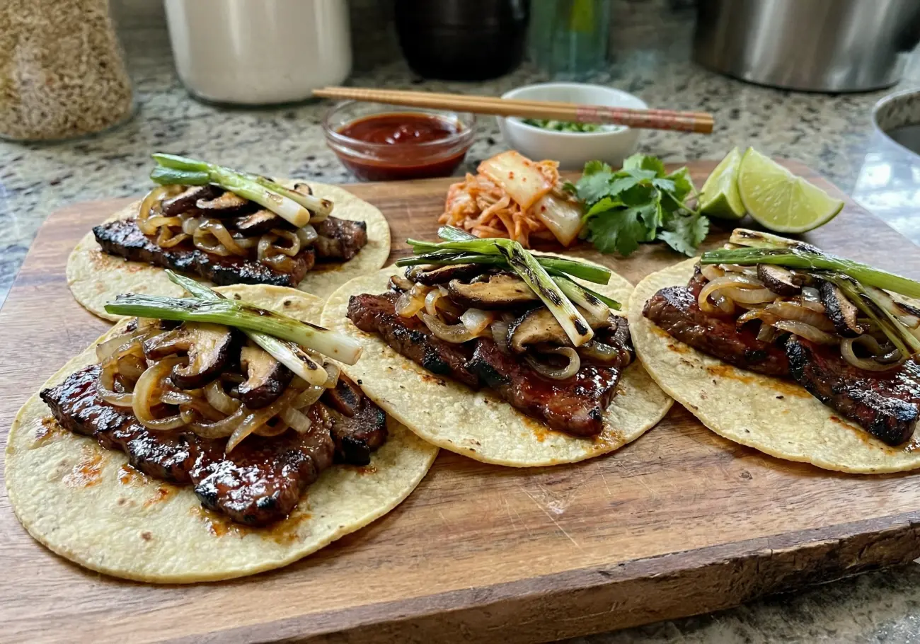 This dish is a study in contrasts: the heat and fermentation of Korean chili paste (gochujang), the fatty richness of flanken-style short ribs, and the earthy, floral aroma of a fresh corn tortilla. We avoid the common mistake of “mushy” toppings by sautéing each vegetable individually, ensuring every bite has a distinct structural integrity.