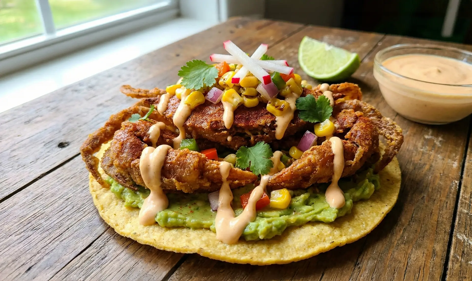 This recipe elevates the humble tostada by treating the soft shell crab as the undisputed star. We use a light cornstarch and spice dredging to ensure the crab remains airy rather than heavy. To provide a counterpoint to the deep-fried richness, we incorporate a “vegetable confetti” that is sautéed with precision to maintain individual integrity. It’s bright, spicy, and deeply satisfying.